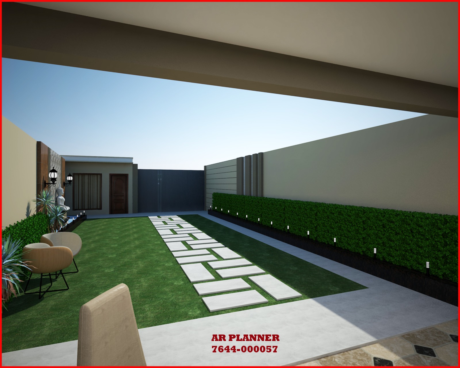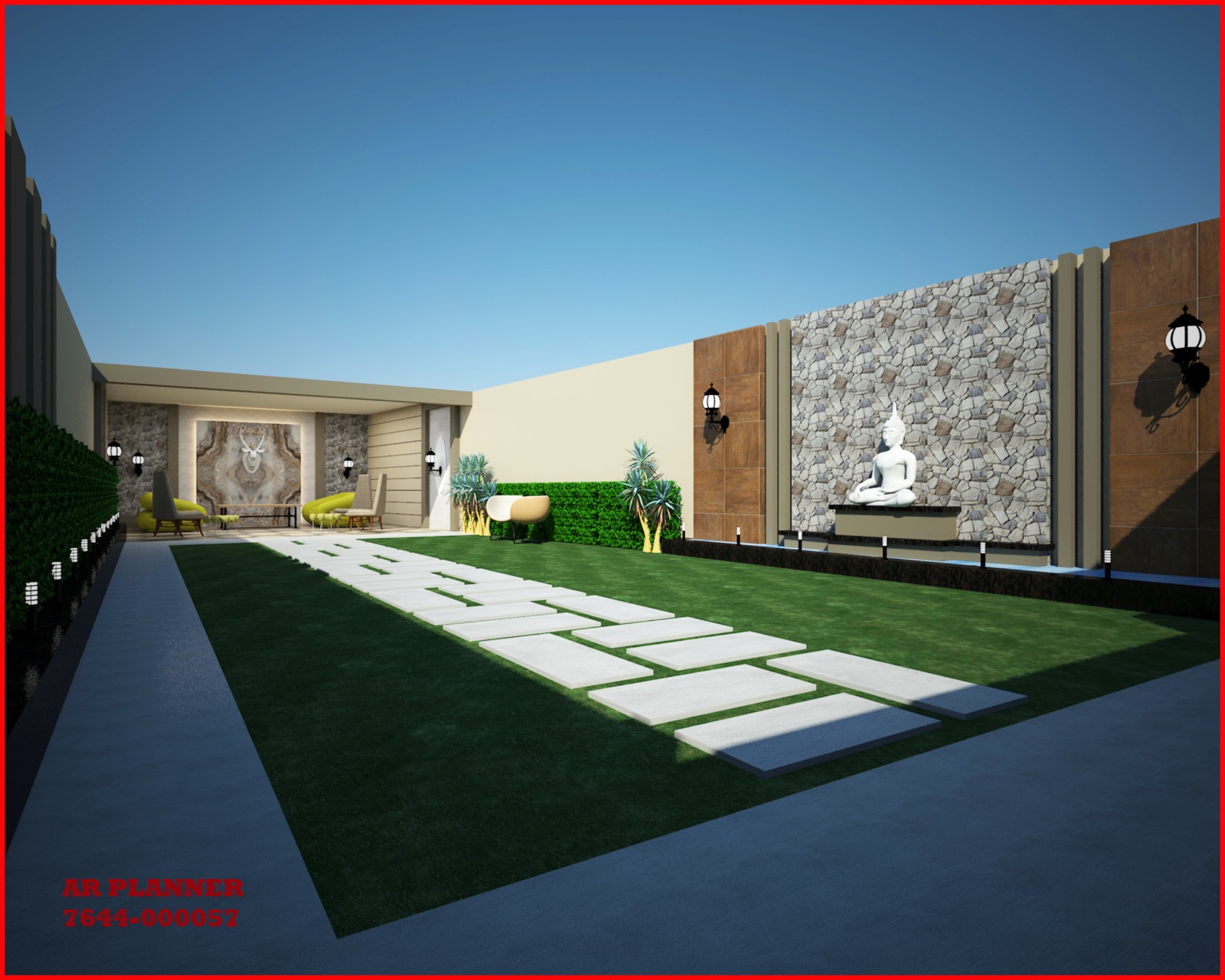 Green Landscape – Central lawn/garden with pathways and plantation zones